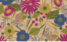 Loneta/ Canva con estampado floral con tonos verdes, azules, magenta y fondo lino.