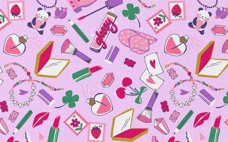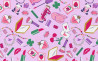 Tejido popelín algodón 100% en fondo rosa y estampado variado.