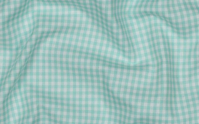 Tejido de algodón 100% con estampado Vichy en color Menta y la medida del cuadro es de 1cm.
