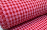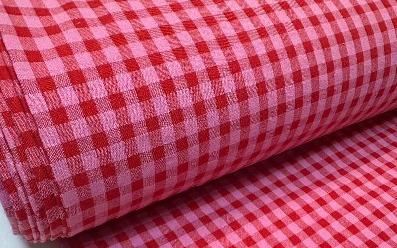 Tejido de algodón y poliéster reciclado con un efecto arrugado en color rosa y fresa.